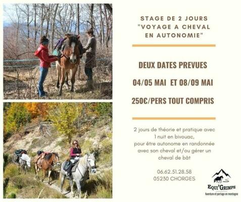 Formation proposée par l'association Equi'grimpe. Le we du 04/05 mai et du 08/09 mai à Chorges (05)